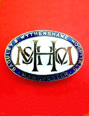 ..... Short Description ...... The Baguley & Wythenshaw Hospitals, Manchester, Hospital badge was awarded to nurses on completion of training. It is oval in shape and made from (materials), with the hospital name around the circumference. The badge weighs (weight) grams and has a (rear pin/button hole) fixing. Picture: The central design is of (description). Badges (were/were not) named and dated with the name of the recipient on the reverse. ..... |