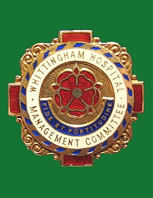 Short Description ...... The Whittingham Hospital Management Committee Hospital badge was awarded to nurses on completion of training. It is circular in shape and made from (materials), with the hospital name around the circumference. The badge weighs (weight) grams and has a (rear pin/button hole) fixing. Picture: The central design is of (description). Badges (were/were not) named and dated with the name of the recipient on the reverse. |