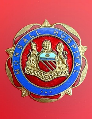 ...... Short Description ...... The Monsall Hospital Manchester Hospital badge was awarded to nurses on completion of training. It is circular in shape and made from (materials), with the hospital name around the central circumference. The badge weighs (weight) grams and has a (rear pin/button hole) fixing. Picture: The central design is of (description). Badges (were/were not) named and dated with the name of the recipient on the reverse. ...... |