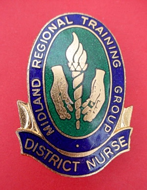 ...... Short Description ...... The Midland Regional Training Group Hospital badge was awarded to nurses on completion of training. It is oval in shape and made from (materials), with the hospital name around the circumference. The badge weighs (weight) grams and has a (rear pin/button hole) fixing. Picture: The central design is of (description). Badges (were/were not) named and dated with the name of the recipient on the on the reverse. ...... |