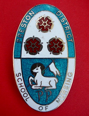 Short Description ...... The Preston District School of Nursing Hospital badge was awarded to nurses on completion of training. It is made from (materials). The badge weighs (weight) grams and has a (rear pin/button hole) fixing. Picture: The central design is of is basically a square red cross supporting and two circles with the hospital and school name around the circumferences with the central circle containing the hospital crest. The badges (were/were not) named and dated with the name of the recipient on the reverse ....... |