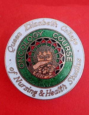 Short Description ...... The The Queen Elizabeth College Hospital badge was awarded to nurses on completion of training. It is circular in shape and made from (materials), with the hospital name, date of the hospitals construction and motto inscribed in Latin around the circumference. The badge weighs (weight) grams and has a (rear pin/button hole) fixing. Picture: The central design is of (description). Badges (were/were not) named and dated with the name of the recipient on the reverse. |