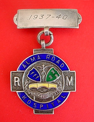 ...... Short Description ...... The Alma Road Hospital Hospital badge was awarded to nurses on completion of training. It is circular in shape and made from (materials), with the hospital name, date of the hospitals construction and motto inscribed in Latin around the circumference. The badge weighs (weight) grams and has a (rear pin/button hole) fixing. Picture: The central design is of (description). Badges (were/were not) named and dated with the name of the recipient on the reverse. ...... |