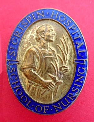 Short Description ...... The St Crispin Hospital Hospital badge was awarded to nurses on completion of (length of) training. The badge is circular in shape and made from (materials), with the hospital name outlined around the circumference. The badge weighs (weight) grams and has a (rear pin/button hole) fixing. Picture: The central design is of the Burnley coat of arms and motto inscribed in Latin below the shield. Badges (were/were not) named and dated with the name of the recipient on the reverse.. |