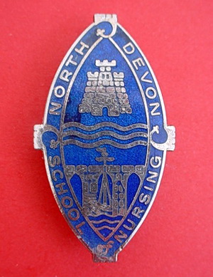 Short Description ...... The North Devon School of Nursing Hospital badge was awarded to nurses on completion of training. It is circular in shape and made from (materials), with the hospital name, date of the hospitals construction and motto inscribed in Latin around the circumference. The badge weighs (weight) grams and has a (rear pin/button hole) fixing. Picture: The central design is of (description). Badges (were/were not) named and dated with the name of the recipient on the reverse. |