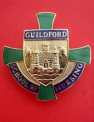 Short Description ...... The Guildford School of Nursing Hospital badge was awarded to nurses on completion of (length of) training. The badge is circular in shape and made from (materials), with the hospital name outlined around the circumference. The badge weighs (weight) grams and has a (rear pin/button hole) fixing. Picture: The central design is of the Burnley coat of arms and motto inscribed in Latin below the shield. Badges (were/were not) named and dated with the name of the recipient on the reverse.. |
