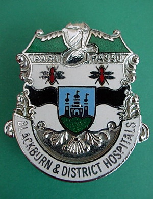 ..... Short Description ...... The Blacburn & District Hospital Hospital badge was awarded to nurses on completion of training. It is a sheild in shape and made from (materials), with the school nam around the circumference. The badge weighs (weight) grams and has a (rear pin/button hole) fixing. Picture: The central design is of (description). Badges (were/were not) named and dated with the name of the recipient on theon the reverse. ...... |
