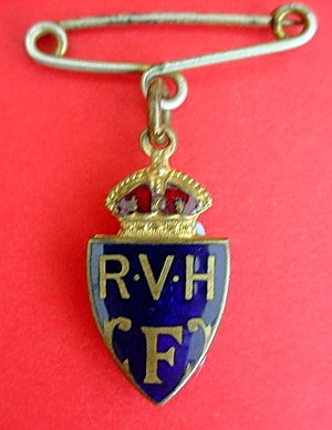 ...... Short Description ...... The Royal Victoria Hospital Folkstone Hospital badge was awarded to nurses on completion of training. It is oval in shape and made from (materials), with the hospital name around the circumference. The badge weighs (weight) grams and has a (rear pin/button hole) fixing. Picture: The central design is of (description). Badges (were/were not) named and dated with the name of the recipient on the on the reverse. ...... |