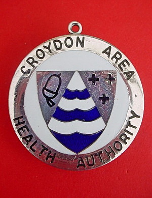 Short Description ...... The Croydon Area Health Authority Hospital badge was awarded to nurses on completion of training. It is made from (materials). The badge weighs (weight) grams and has a (rear pin/button hole) fixing. Picture: The central design is of is basically a square red cross supporting and two circles with the hospital and school name around the circumferences with the central circle containing the hospital crest. The badges (were/were not) named and dated with the name of the recipient on the reverse ....... |