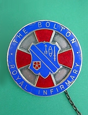 ..... Short Description ...... The Bolton Royal Infirmary Hospital badge was awarded to nurses on completion of training. It is circular in shape and made from (materials), with the school nam around the circumference. The badge weighs (weight) grams and has a (rear pin/button hole) fixing. Picture: The central design is of (description). Badges (were/were not) named and dated with the name of the recipient on theon the reverse. ...... |