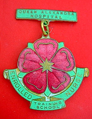 ...... Short Description ...... The Queen Alexandra Hospital Enrolled Nurse Training School Hospital badge was awarded to nurses on completion of training. It is circular in shape and made from (materials), with the hospital name, date of the hospitals construction and motto inscribed in Latin around the circumference. The badge weighs (weight) grams and has a (rear pin/button hole) fixing. Picture: The central design is of (description). Badges (were/were not) named and dated with the name of the recipient on the reverse. ...... |
