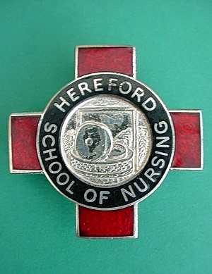 ..... Short Description ...... The Hereford School of Nursing Hospital badge was awarded to nurses on completion of training. It is circular in shape and made from (materials), with the hospital name around the circumference. The badge weighs (weight) grams and has a (rear pin/button hole) fixing. Picture: The central design is of (description). Badges (were/were not) named and dated with the name of the recipient on the reverse. ...... |