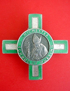 ...... Short Description ...... The Chichester School of Nursing Hospital badge was awarded to nurses on completion of training. It is circular in shape and made from (materials), with the hospital name around the circumference. The badge weighs (weight) grams and has a (rear pin/button hole) fixing. Picture: The central design is of (description). Badges (were/were not) named and dated with the name of the recipient on the reverse. ...... |