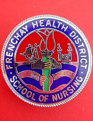 Short Description ...... The Frenchay Health Distrct School of Nursing Hospital badge was awarded to nurses on completion of (length of) training. The badge is oval in shape and made from (materials), with the hospital name outlined around the circumference. The badge weighs (weight) grams and has a (rear pin/button hole) fixing. Picture: The central design is of the Jersey coat of arms below a Queens Crown. Badges (were/were not) named and dated with the name of the recipient on the reverse. |