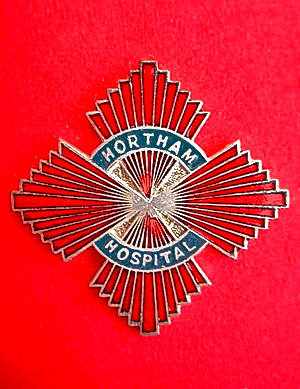 Short Description ...... The Hortham Hospital Hospital badge was awarded to nurses on completion (Length) of training. It is circular in shape and made from (materials). The badge weighs (weight) grams and has a (rear pin/button hole) fixing. Picture: The central design is of a circle with the group logo in lettering in the centre and the name of the group around the outer circumference outlined by green enamel. Badges (were/were not) named and dated with the name of the recipient on the reverse. |