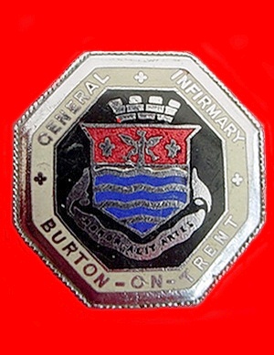 Short Description ...... The Burton-on-Trent General Infirmary Hospital badge was awarded to nurses on completion of training. It is circular in shape and made from (materials), with the hospital name, date of the hospitals construction and motto inscribed in Latin around the circumference. The badge weighs (weight) grams and has a (rear pin/button hole) fixing. Picture: The central design is of (description). Badges (were/were not) named and dated with the name of the recipient on the reverse. ...... |