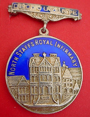 ...... Short Description ...... The North Staffs Royal Infirmary Hospital badge was awarded to nurses on completion of training. It is circular in shape and made from (materials), with the hospital name, date of the hospitals construction and motto inscribed in Latin around the circumference. The badge weighs (weight) grams and has a (rear pin/button hole) fixing. Picture: The central design is of (description). Badges (were/were not) named and dated with the name of the recipient on the reverse. ...... |
