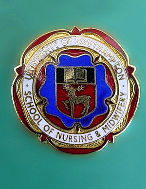 ...... Short Description ...... The University of Southampton School of Nursing & Midwifery Hospital badge was awarded to nurses on completion of training. It is square in shape with cropped corners and is made from (materials). The badge weighs (weight) grams and has a (rear pin/button hole) fixing. Picture: The central design is of the college logo and inscription against a blue enamel background. Badges (were/were not) named and dated with the name of the recipient on the reverse. ...... |