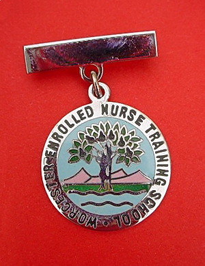 Short Description ...... The Bury & Rossendale Hospital Group Hospital badge was awarded to nurses on completion (Length) of training. It is circular in shape - with a suspension bar and is made from (materials). The badge weighs (weight) grams and has a (rear pin/button hole) fixing. Picture: The central design is of a circle with the group logo in lettering in the centre and the name of the group around the outer circumference outlined by green enamel. Badges (were/were not) named and dated with the name of the recipient on the reverse. |