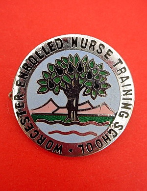 Short Description ...... The Worcester Enrolled Nurse Training School Hospital badge was awarded to nurses on completion of training. It is a square cruciform shape with a central circular area with a looped suspension bar above. It is made from bronze metal. The badge weighs (weight) grams and has the top looped suspension bar fixing. Picture: The central circular design contains the name of the hospital around the circumference with the central lamp and embellished cross arms cast in relief. Badges (were/were not) named and dated with the name of the recipient on the reverse. |