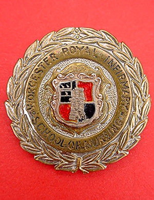 ...... Short Description ...... The Worcester Royal Infirmary School of Nursing badge was awarded to nurses on completion of training. It is circular in shape and made from (silver), with the service name around the circumference. The badge weighs (weight) grams and has a (rear pin/button hole) fixing. Picture: The central design is of (description). Badges (were/were not) named and dated with the name of the recipient on the reverse. ...... |