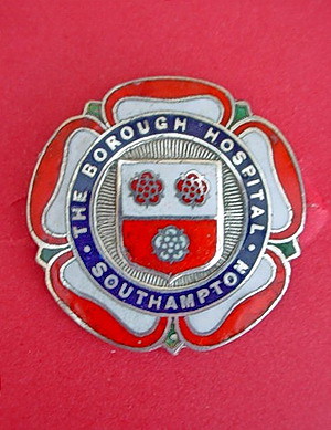 Short Description ...... The Borough Hospital Southampton Hospital badge was awarded to nurses on completion of training. It is a square cruciform shape with a central circular area with a looped suspension bar above. It is made from bronze metal. The badge weighs (weight) grams and has the top looped suspension bar fixing. Picture: The central circular design contains the name of the hospital around the circumference with the central lamp and embellished cross arms cast in relief. Badges (were/were not) named and dated with the name of the recipient on the reverse. |