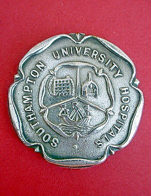 Short Description ...... The Southampton University Hospital Hampshirel Hospital badge was awarded to nurses on completion of training. It is circular in shape and made from (materials), with the hospital name, date of the hospitals construction and motto inscribed in Latin around the circumference. The badge weighs (weight) grams and has a (rear pin/button hole) fixing. Picture: The central design is of (description). Badges (were/were not) named and dated with the name of the recipient on the reverse. |