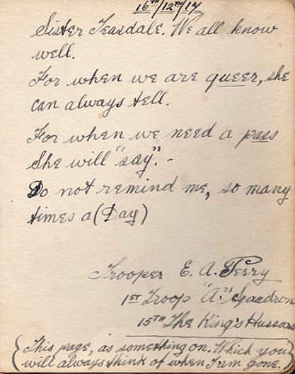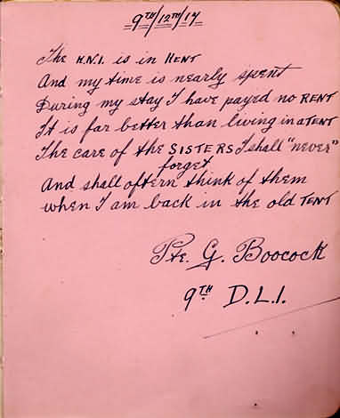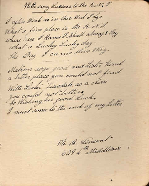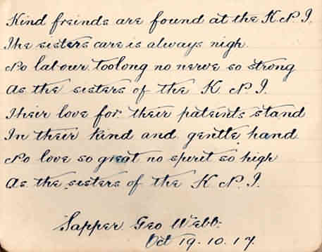 This is one of three autographs by this Soldier in Lilians book, and one which uses the initials K.P.I. / K.N.I. (it is hard to decipher, if it is K.P.I. this appears to be Kingswood Park Infirmary/Hospital, Tunbridge Wells which is also listed as an auxiliary hospital - and was only about one mile from the K.N.I: Lilian might have been loaned to work there during the war.) (10)