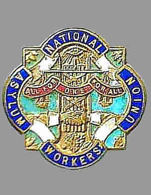 Short Description ...... The National Asylum Workers Union Hospital badge was awarded to nurses on completion (Length) of training. It is irregular in shape and made from (materials). The badge weighs (weight) grams and has a (rear pin/button hole) fixing. Picture: The central design is of union logo & lettering in the centre and the name of the union around the outer circumference outlined by blue enamel. Badges (were/were not) named and dated with the name of the recipient on the reverse. |