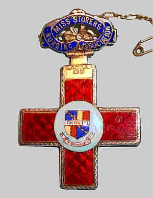 Short Description ...... The Miss Storers Nursing Association badge was awarded to nurses on completion of training. It is a cruciform shape and made from (materials), with the a central logo. The badge weighs (weight) grams and has a (rear pin/button hole) fixing. Picture: The central design is of (description). Badges (were/were not) named and dated with the name of the recipient on the reverse. ...... |
