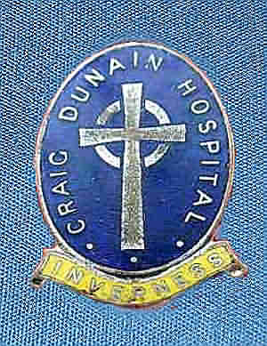 ...... Short Description ...... The Craig Dunain Hospital, Inverness, Scotland, Hospital badge was awarded to nurses on completion of training. It is oval in shape and made from silver, with the hospital name and central logo within the circumference. The badge weighs (weight) grams and has a (rear pin/button hole) fixing. Picture: The central design is of (description). Badges (were/were not) named and dated with the name of the recipient on the reverse. ...... |